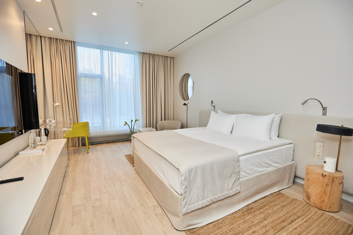 Оттенок Дуб Песочный идеально подходит для небольших комнат — такие молочные тона прекрасно расширяют пространство, добавляя комнате света и тепла.